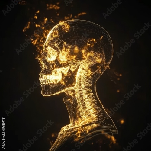 skull, glowing, particle, science, biology, digital artwork, neon, x-ray, aethereal, glow, texture, anatomical, conceptual, background, health, light, illustration, artistic, visualisation, medicals, bod, creativity, design, energy, abstract, unique, picture, digital, aglow, shine, monochrome, silhouette, decorative, fantasy, transparent, motion, space, modern