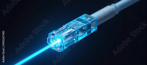 Luminous optical fiber cable for connection and data transmission at the speed of light, increasing data rates and data throughput