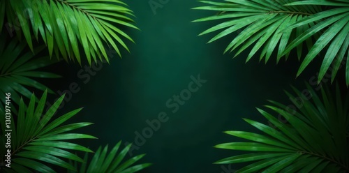 Lush dark green palm fronds, tropical backdrop, summer background, jungle background, rainforest