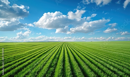 lush, farmland, clear sky, blue, agriculture, nature, green, rural, landscape, country, farm, field, horizon, peaceful, open, crop, growth, fertile, serene, outdoors, scenic, meadow, environment, sunny, beautiful, idylli, plant, harvest, cultivation, earthy, summer, vegetation, tranquil