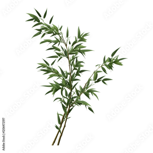 Lush Green Bamboo Branch Vibrant Foliage Isolated Botanical Illustration Nature Photography