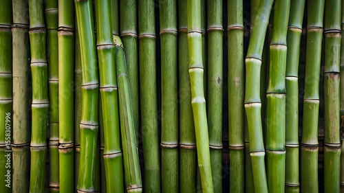 Lush Green Bamboo Fence Texture Background – Natural Eco-Friendly Wallpaper, Tropical Backdrop, Seamless Pattern for Design, Rustic Wooden Panel, Asian Zen Style, High-Resolution Stock Photo