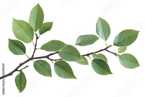 green leaf, tree branch, twig, foliage, nature, leaf, leaf, plant, botany, flora, ecology, environmental, organic, fresh, vibrant, detailed, closeup, isolated, white background, hi-res, image, photo, design element, texture, pattern, natural, eco, green, springtime, spring