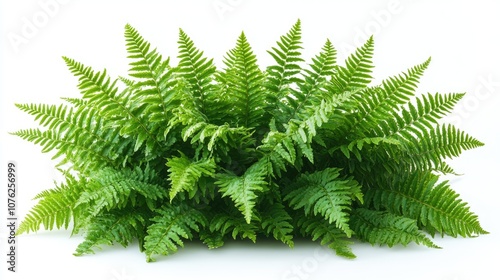 Lush Green Fern Fronds on a White Background
