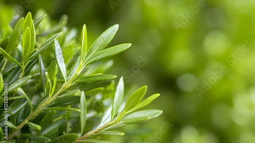Lush green foliage close-up, vibrant leaves, blurred natural background, ideal for nature, gardening, or spring themes