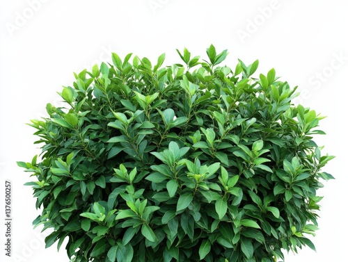 Lush Green Foliage of a Rounded Shrub Against White Background