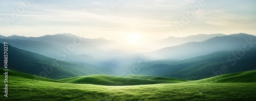 sunrise, mountain, hill, vale, green, nature, landscape, peaceful, serenity, scenic, misty, tranquil, outdoors, view, travel, vacation, adventure, hiking, camping, exploration, beauty, amazing, stunning, breathtaking, explore, discover, freedom, relaxation, harmony, fresh, freshness, sunshine, dawn, horizon, escape, wanderlust, journey, natural, evergreen