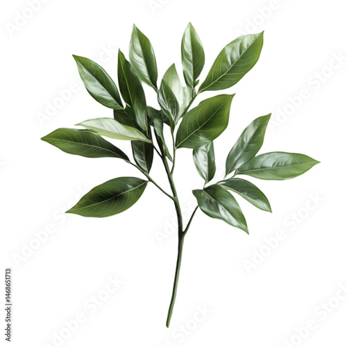 Lush Green Leaves Branch Isolated on Black Background Botanical Beauty Nature Photography