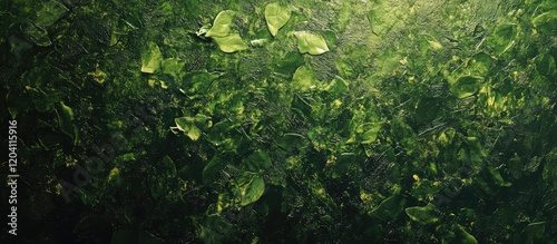 Lush green leaves in natural sunlight with soft focus and copy space for text placement