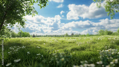 lush, green, meadow, bright, sunny, sky, background, nature, landscape, serene, peaceful, vibrant, outdoors, fresh, natural, scenic, open space, spring, field, countryside, calm, beauty, daylight, summer, tree