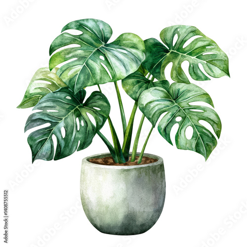 Lush Green Monstera Plant in Elegant Pot with Fresh Leaves for Home Decor