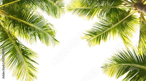 Lush Green Palm Tree Leaves Framing a Bright Sky in a Tropical Paradise Setting