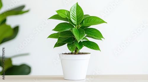 Lush Green Plant in White Pot, Indoor Plant