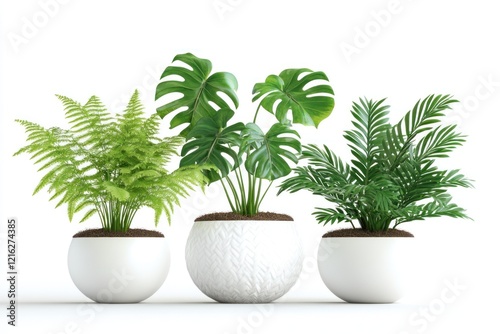 fern, monstera, palm, plant, potted, green, lush, leaf, white, pot, minimalist, design, interior, decor, home, serene, calm, tropical, foliage, vibrant, natural, simple, clean, elegant, modern, stylish, image, photo, studio, background, texture, lighting, composition, arrangement, commercial, product, rendering, three-dimensional, model