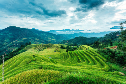 adventure, agriculture, atmosphere, barn, beautiful, cloud, countryside, crop, cultivate, environment, field, forest, freshness, green, greenery, growth, hill, hut, industry, landscape, lush, morning, mountain, nature, northern, paddy, plant, plantation, remote, rice, rural, rustic, scenery, scenic, serene, step, terrace, traditional, calmness, travel, tropical, vibrant, vietnam, view, village, weather, wilderness