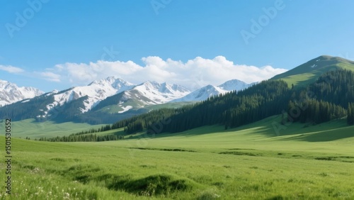 clear sky, cloud, mountain chain, pine tree, landscape, nature, scenic view, mountain, mountain, sky, grass, summer, alps, snow, panorama, meadow, view, forest, green, alpine, hill, cloud, travel, peak, vale, field, rock, tree, high