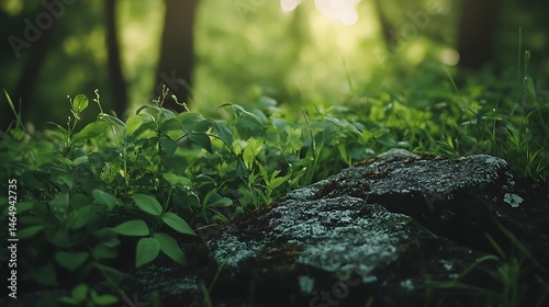 foliage, moss, rock, greenery, timberland, nature, plant, forest, light, outdoors, vegetation, ground, environment, natural, landscape, scenic, flora, closeup, sunlight, dappled, mossy, lichen, tranquil, serene, peaceful, growth, leaf, branch, tree, ground cover, organic, beauty, scene, grass, wild, fresh, vibrant, seasonal, background, daylight