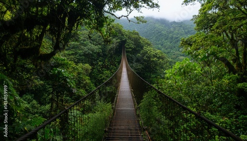 bridge, rainforest, jungle, suspension, hiking, nature, travel, adventure, tour tourism, forest, canopy, walk, scenic, view, mountain, misty, cloudy, green, tree, foliage, path, paseo, ecuador, costa rica, panama, suspension bridge, vacation, hiking trail