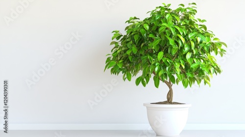 Lush Weeping Fig in White Pot - Serene weeping fig, symbolizing growth, peace, nature, tranquility, and home. A perfect addition to any interior.