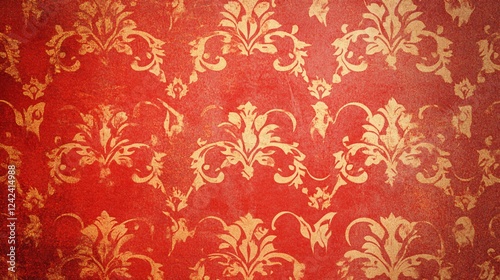 Luxurious and stylish vintage grunge damask pattern background in red and gold, ideal for enhancing any design project