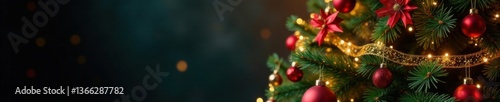 Luxurious Christmas tree with garlands and ribbons, luxury christmas, ribbon details, stylish tree