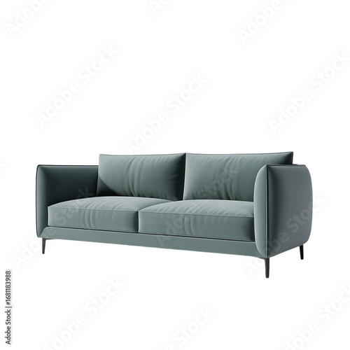 Luxurious contemporary sofa in soft teal velvet with sleek design perfect for modern interiors