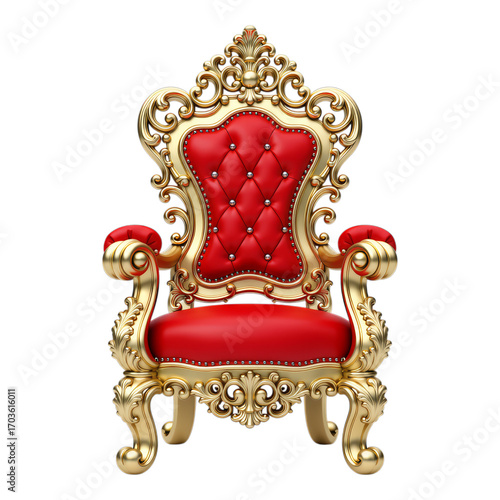 Luxurious Crimson Throne with Gold Accents, Transparent Background, 3D Realism Design Element