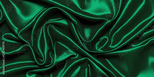 Luxurious Emerald Green Silk Fabric. A close-up of smooth, flowing emerald green silk fabric, showcasing its rich texture and luxurious sheen, perfect for elegant design themes.