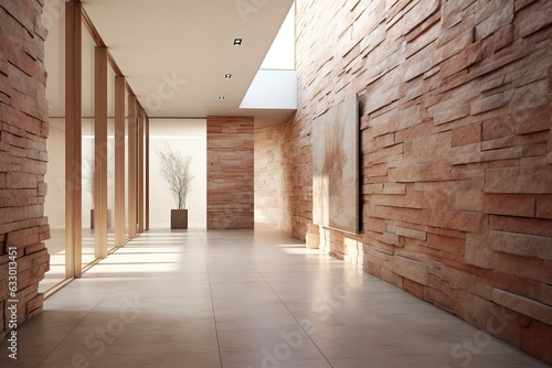 Luxurious Entrance of a Modern House. Hallway made of Wood. A Decorative Pot creating a nice Atmosphere.