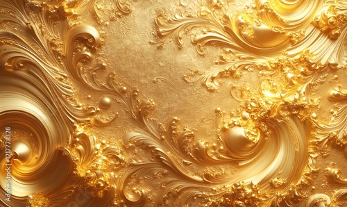 gold, abstract, background, texture, swirl, ornate, pattern, metallic, elegant, luxury, surface, design, decorative, fluid, shiny, rich, art, graphic, smooth, flowing, detail, shimmering, polished, dimensional, relief, gilded, curve, highlight, light, shadow, intricate, aglow, warm, wallpaper, style, illustration, aesthetic, modern, creative, rendering
