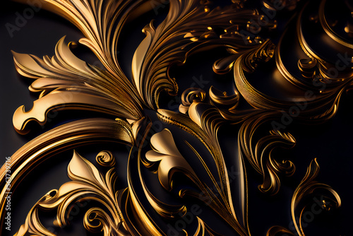 gold, black, pattern, luxury, metallic, background, leaf, flower, floral, wallpaper, art, design, fashion, nature, card, plant, wedding, gold, modern, retro, tropical, vintage, creative, ornament, elegant, exotic, beautiful, curve, decor, concept, abstract, invitation, texture, ai, illustration, generated