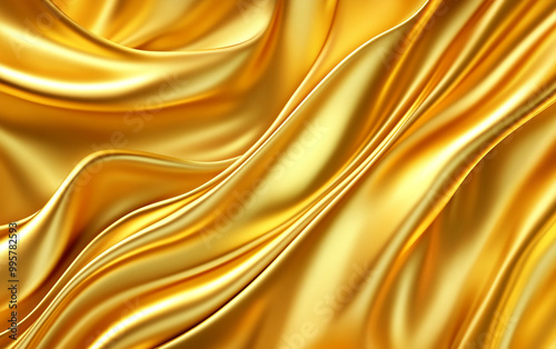 Luxurious golden fabric drapes elegantly, showcasing smooth, flowing textures that evoke sense of opulence and warmth. rich golden hue adds touch of glamour to any design