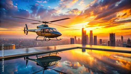 helicopter, luxury, rooftop, pool, city, modern, sunset, urban, elegance, aviation, travel, architecture, wealth, lifestyle, panoramic, skyline, leisure, opulence, exclusive, high-end, design, private, aerial, relaxation, comfort, adventure, summer, vacation, tower block, escape, affluent, resort, urban living, elite, beautiful, premium, upscale, sophisticated, rich, lavish, tranquil, stunning, breathtaking