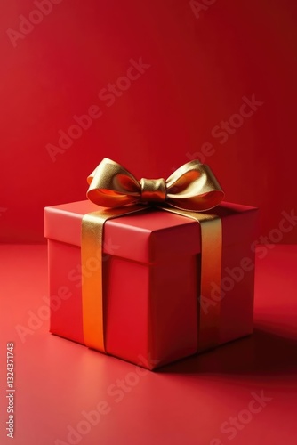 Luxurious red gift box with gold bow and ribbon, wrapping, decorative
