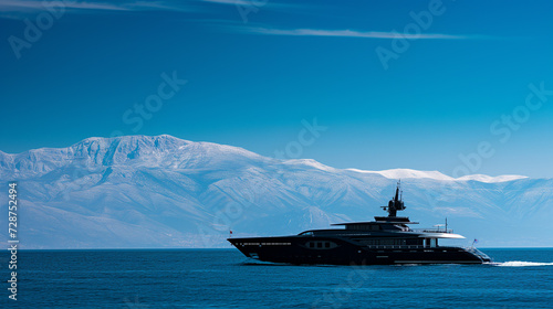 Luxurious sailing yacht in the blue sea against the backdrop of mountains