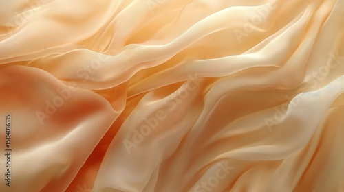 Luxurious silk drapes in gentle waves display warm shades of peach and cream, creating an elegant texture perfect for fashion or decor.