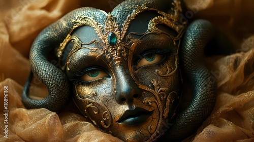Luxurious Snake-Themed Masquerade Masks with Gold and Emerald Accents for Elegant Events
