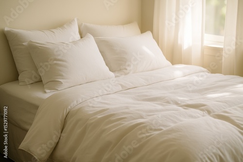 luxurious, white, bedding, pillow, arrangement, creating, comfort, relaxation, atmosphere, inviting, bedchamber, photo, premium, linen, including, fluffy, pillow, soft, sheet, cosy, comforter, arranged, comfortable, bed, natural, lighting, serene, restful, sleeping, environment, home, interior, wellness, peaceful