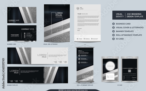 Luxury black and white colorful stationery mock up and visual brand identity set.