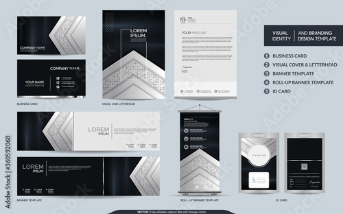Luxury black and white colorful stationery mock up and visual brand identity set.
