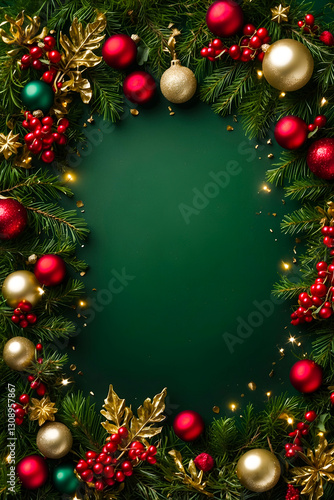 christmas, holiday, background, festive, decoration, green, red, gold, ornament, pine, garland, light, glistering, celebration, winter, new year, christmas, december, gift, seasonal, elegant, luxury, chaplet, bauble, ribbon, spruce, holly, sparkle, glowing, shiny, classic, traditional, party, greeting, card, invitation, frame, blank, copy space, snow, bright, joyful, magical, warm, decorative