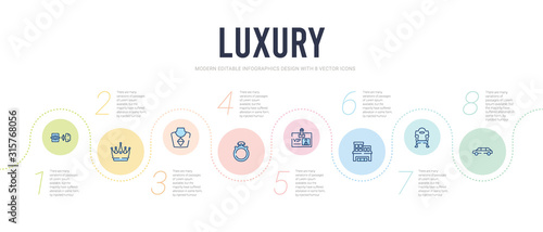 luxury concept infographic design template. included limousine, throne, cottage, vip pass, diamond ring, gems icons