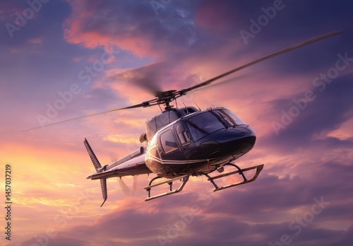 helicopter, sunset, luxury, aircraft, aviation, transportation, travel, flight, air, sky, cloud, golden hour, twilight, dusk, evening, aerial, view, chopper, rotorcraft, engine, propeller, blade, machine, technology, engineering, design, elegance, sophisticated, speed, power, freedom, adventure, journey, exploration, scenic, beautiful, majestic, vibrant, colours, atmosphere, calm, peaceful, serenity, private jet
