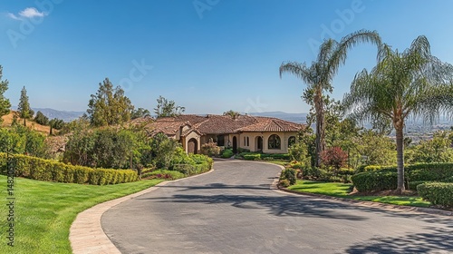 house, villa, estate, luxury, mediterranean, architecture, home, property, residential, building, residence, luxury home, hilltop, panoramic, view, landscape, garden, driveway, tree, palm, grass, sky, blue, sunny, daytime, exterior, hill, mountain, nature, beautiful, scenic, elegant, sophisticated, peaceful, serene, calm, bright