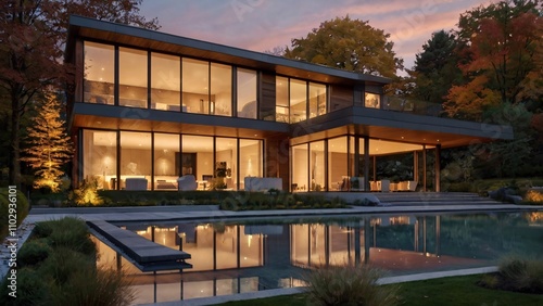 Luxury House with Glass Walls, Pool, and Forest Backdrop V6