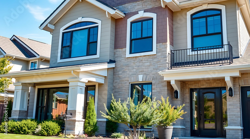 house, home, exterior, architecture, building, residential, property, luxury, modern, design, facades, window, door, balcony, stone, brick, roof, landscaping, garden, plant, suburb, neighbourhood, american
