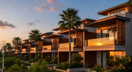 resort, hotel, architecture, building, exterior, travel, vacation, luxury, tropical, design, tour tourism, sea, ocean, sky, sunset, sunrise, palm, tree, balcony, window, villa, beach, holiday, destination, landscape, nature, summer, sun, water