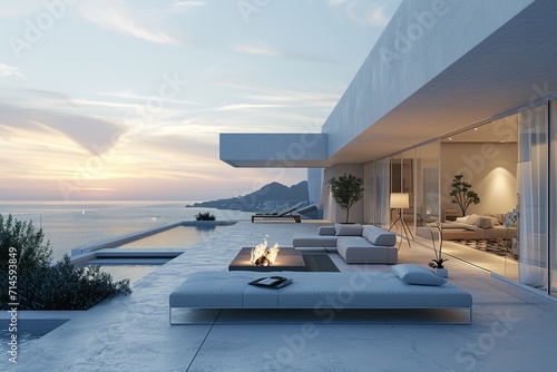 Luxury Seaside Living Room: White Elegance,Oceanview Elegance: White Terrace Retreat,White Living Room Paradise: Seafront Luxury