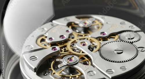 watch, luxury, horologe, mechanism, gear, movement, closeup, macro, precision, engineering, craftsmanship, gem, metal, component, horology, timekeeping, detail, vintage, analog, technology, gear, clockwork, chronograph, swiss, accessory, gold, silver, elegant, sophisticated, design, texture, pattern, mechanical, closeup, isolated, high-end, premium, brand, style, fashion, object