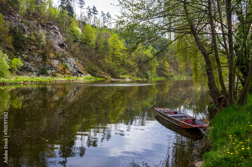 springtime, spring, forest, tree, greener, sky, cloud, nature, landscape, view, travel, journey, river, water, czech, czech republic, cz, boat